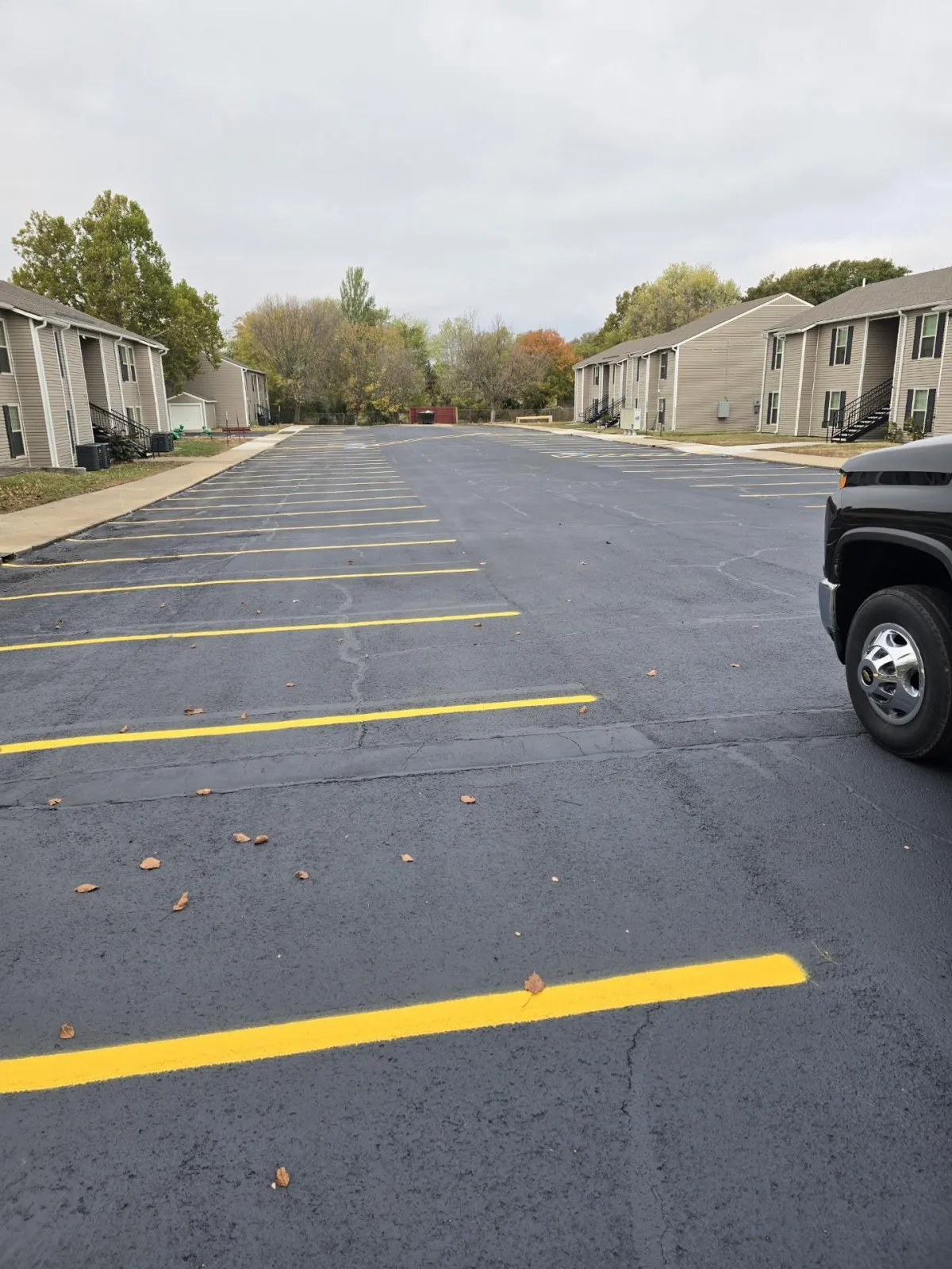 We apply a premium, jet‑black sealer by broom and/or spray for full coverage—keeping it off your grass, house, and concrete.